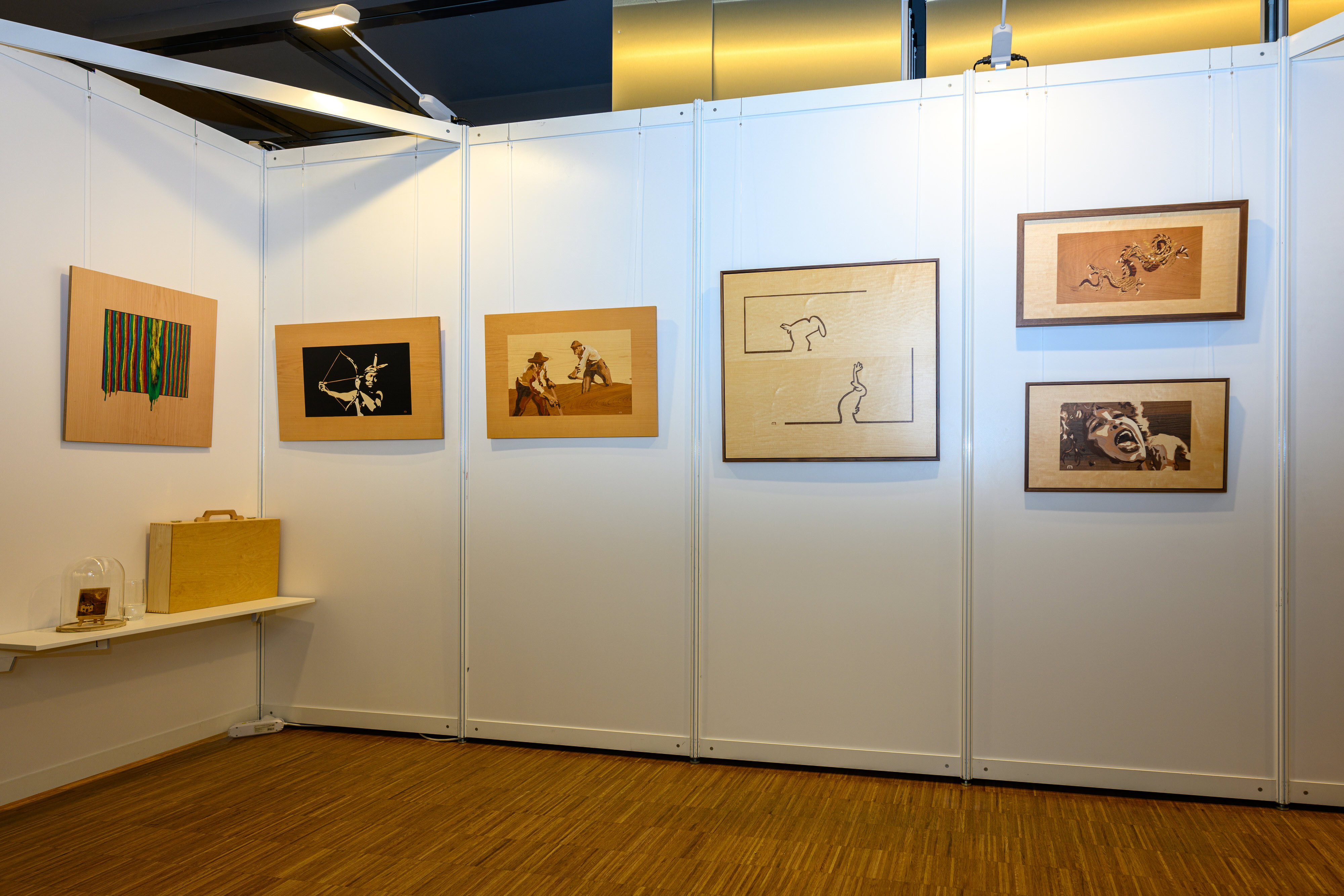 Es war eine spannende Erfahrung mit tiefen Einblicken und Eindrücken in die Arbeiten von neuen Künstlerkollegen. Meine Werke erregten durchaus Aufmerksamkeit, und auch Staunen darüber, dass man mit Holzfurnieren ganze Bilder gestalten kann. Langweilig wurde es mir da nicht.